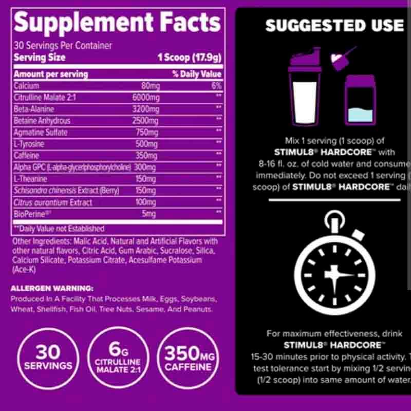 Diseñado como un pre entreno hardcore para atletas avanzados y levantadores experimentados, STIMUL8 Hardcore Extreme no es para los débiles. Energía Extrema y Enfoque Inquebrantable STIMUL8 HARDCORE EXTREME de FINAFLEX es un pre workout potente, formulado con ingredientes de alta calidad para brindarte una ventaja real en cada sesión.