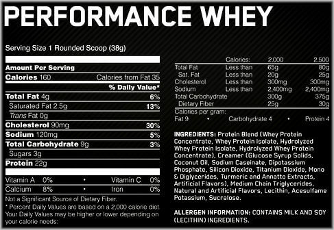 OPTIMUM NUTRITION 100% WHEY PROTEIN PERFORMANCE 4.3 LB